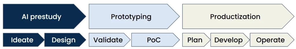 This blog is organized into steps that are typically followed in the creation of an AI product. Let’s focus on the first part, the AI prestudy, which has two major steps: